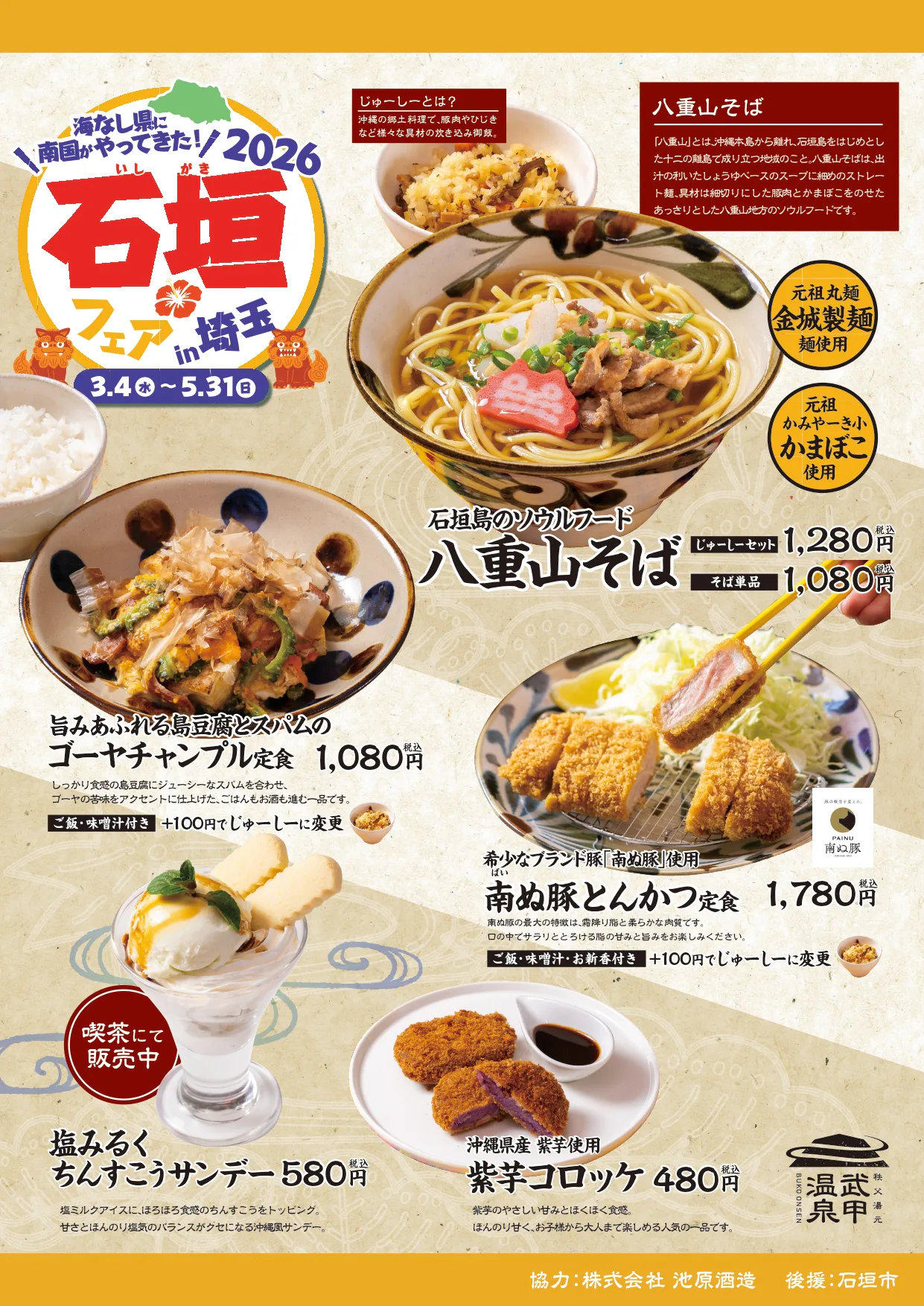 ぜひ秩父の地で石垣のお食事やお土産をお楽しみください。