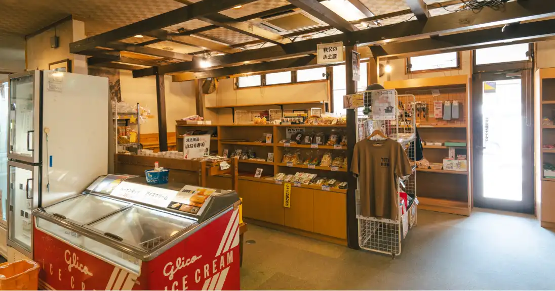 秩父地方のお土産からキャンプ用品まで、幅広くラインアップしています。お風呂上がりにぴったりなドリンクも販売中!